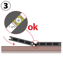 | El rodapié, del mismo color, permite un acabado impecable de los bordes de su suelo. Su instalación se realiza también a través de tornillos de acero inoxidable, alineación se consigue mediante chaflán. |
