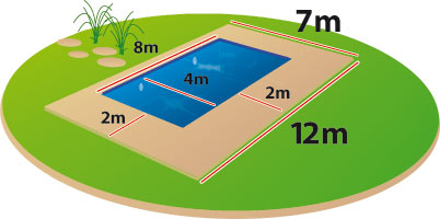 Antes de hacer su pedido del Kit de madera compuesta, necesitará efectuar un plano de instalación con el fin de determinar la superficie total de madera compuesta necesaria para su piscina. Ejemplo : para una piscina de 8m x 4m, es decir de 32m2 con una playa periférica de superficie 12m x 7m (84m2), la superficie que se deberá calcular es de 84m2 - 32m2 = 52m2. Necesitará prever un 5% suplementario para los recortes, será necesario pedir entonces alrededor de unos 56m2 Las herramientas necesarias para la instalación son : Sierra circular, taladro, destornillador. Los tornillos (de acero inoxidable) están incluidos para la fijación de los clips. La fijación de los ristreles se hará con tornillos si las tablas están colocadas sobre una losa de hormigón, o sobre contacto de hormigón si la instalación se hace sobre un suelo "natural". |
