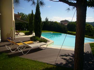 Playas de piscina, patio, brocales, terrazas, zampeado... Gracias a su resistencia a las intemperies climáticas, la madera compuesta se instala donde quiera y pone en valor su piscina.